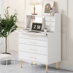 - 【Elegant Design】The metal handle helps you open the drawer easily. The elegant combination of gray legs and metal feet adds a modern touch to the dressing table. The feet feature non-slip pads for stability.