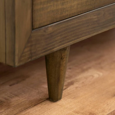 Redesign your dream nesting space with the Aurora Mid-Century four-piece bedroom set by Abbyson. Antique nickel hardware adds a touch of old-world charm to your bedroom while complementing the nice wood finish. Organize your linen and other bedroom essentials in the nightstands and chest which features, soft-closing drawers.
