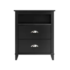 - Drawers run smoothly on metal glides with built-in safety stops