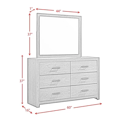 | Includes | 1 Bed (Headboard, Frame, and Hardware), 1 Nightstand, 1 Horizontal Dresser and 1 Mirror |