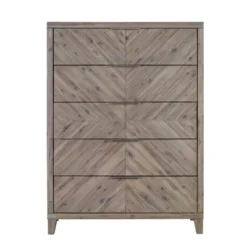 Redesign your dream nesting space with the Aurora Mid-Century five-piece bedroom set by Abbyson. Antique nickel hardware adds a touch of old-world charm to your bedroom while complementing the wood finish. The five-piece set includes the bed frame, two nightstands, one dresser and one mirror. Drawers feature English dovetail joints and metal ball-bearing gliders for smooth openings and closings. The nightstands feature USB port for easy charging and convenience. Meanwhile, the dresser and mirror will make it easier to organize your clothes and help you get ready in the mornings.