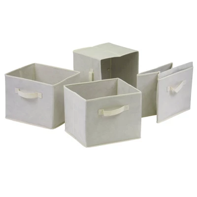 - 4 Beige Foldable Fabric Baskets open for storage with 10.97″W x 10.06″D x 9″H