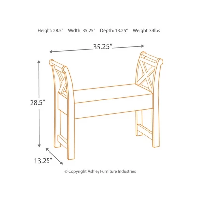 This bench is the perfect addition for any room that needs a little extra seating. Beautiful brown color and X-design on the sides give the right amount of style to this sturdy piece. Need to put away a few things? Lift the seat top to reveal storage. Signature Design by Ashley is a registered trademark of Ashley Furniture Industries, Inc.