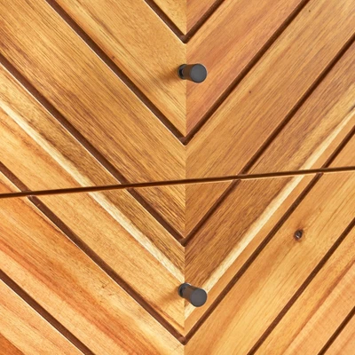 Freshen up your bedroom with the distinctive Alexandria 6-Drawer Dresser from Lifestorey. Artistically crafted with solid wood drawer fronts and Acacia veneers, the chevron pattern creates a stunning design. The natural wood appearance provides beautiful color variations enhancing the natural grain and features black knobs and metal hairpin legs which add creative interest. The six (6) spacious drawers provide ample storage, making this dresser the ideal complement to your bedroom or guest suite.