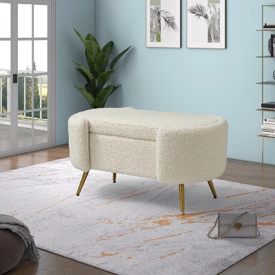 The unique shape, modern and stylish design, and furry upholstered with metal legs make this storage bench particularly eye-catching. Premium polyester fabric, which is very delicate to the touch and has no irritation to people who have sensitive skin and looks new even after long-term use. Upholstered with soft-touching and padded with high-quality foam, provides texture and comfort. Make your living space more organized with this revolutionary bench with a storage function. Metal legs and manufactured wood frame provide extra strength, it is spacious enough to store bedsheets, blankets, clothes, pillows, toys, books, and many other items. The furry bench, in a fashionable and simple style, is suitable for various scenarios. It is the best choice for your decorating a room or gifting to families and friends.Item size:39.4″W*19.7″D*18.9″H.