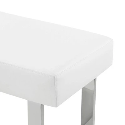 The Armen Living Amanda contemporary bench is a beautiful piece sure to add extra style to any modern living room. The Amanda boasts sleek faux leather upholstery over a sturdy chrome metal frame. The Amanda’s sleek metal legs assure durability without detracting from the style of the piece. The Amanda bench is ideal when paired with the Amanda dining table, corner sofa, and side chair. This piece is a unique and eye-catching bench that elevates any home style. This bench is crafted with the best materials for a high-quality, long lasting bench you can display in your home. The Amanda can be used in multiple parts of the home and can serve both functional and decorative purposes. You can place this beautiful bench, in your bedroom, hallway, living room, den or even in your home office. The Amanda bench is available in your choice of black, white, or Gray. We stand by the quality, the craftsmanship, and the integrity of our product by offering a 1-year warranty for all our products.