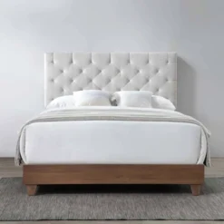 Instill soft tones and a meaningful design with the Annabel tufted arch headboard. Deep inset buttons adorn this magnificent centerpiece for your bedroom decor. Annabel is made from fiberboard, plywood and fine vinyl upholstering for a construction that is both lightweight and long-lasting. Carefully crafted with flowing contours and a richly rewarding design, sleep peacefully while supported by this exceptional headboard. Fits full size beds.