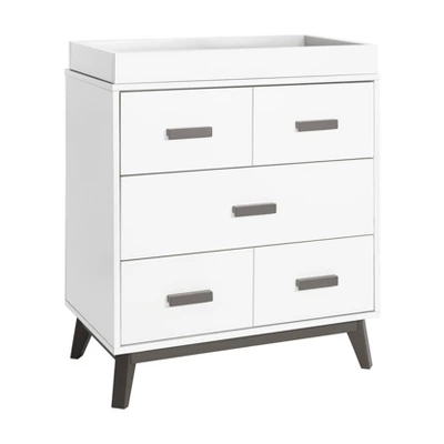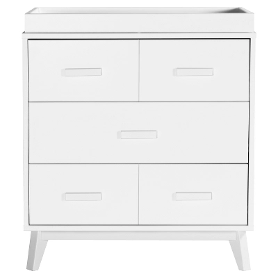 The Scoot 3-Drawer Changer Dresser is mid-century modern style defined. The perfect accompaniment to your Scoot crib, the Scoot 3-Drawer Changer Dresser highlights matching tapered feet and two-toned or solid color detailing. With three drawers and an included removable changing tray, this sturdy unit provides a range of practical storage possibilities to suit all of mom’s needs.