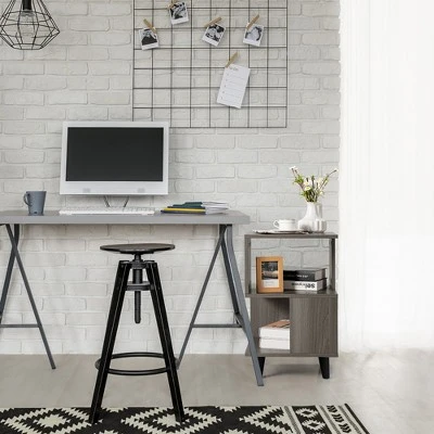 Costway 2 PCS Nightstand Set Modern Side End Table Storage Shelf Grey