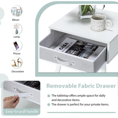- Mid Century Design: The end table adopts mid-century vintage style. With its classic rustic appearance, the bedside table can be matched with any style of furniture. What’s more, with smooth-gliding fabric drawer, it’s practical and convenient for you to open and close smoothly and quietly.