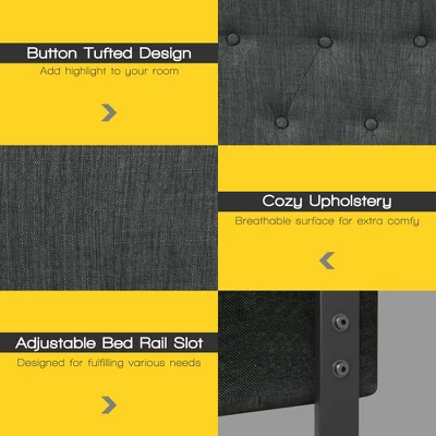 Costway Queen Upholstered Headboard Adjust Button Tufted Faux Linen