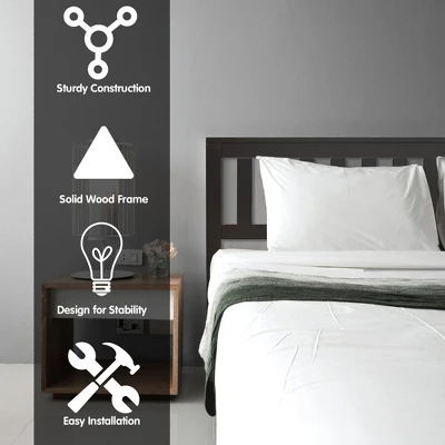 - Restful Night’s Sleep: The bed frame features a well-designed headboard with solid wood panels for comfortable using experience. Besides, wood slats supports eliminate the need for a box spring and will not wobble when you roll over on it. Hence, you can use the mattress directly with this bed frame platform and enjoy a quiet sleeping environment.