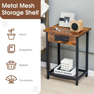 - Add to Storage Space: The 2-tier side table with a spacious tabletop and an additional metal mesh storage shelf can provide you with plenty of storage space for stashing pajamas or holding a midnight snack.