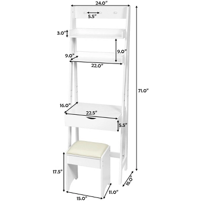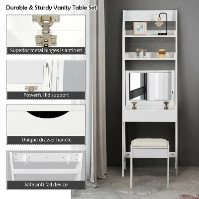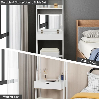 Costway Vanity Set Makeup Dressing Table W/Flip Top Mirror Hooks Shelves