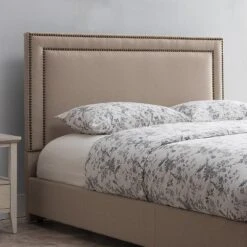 Baffin upholstered headboards offer a premium look at a value price point. With a look that blends with both traditional and modern decor, the Baffin makes your bed distinctive. Tailored taupe faux leather over a padded, wood frame includes two rows of striking nail-head trim. All hardware is included. Fits Full/Queen or King/California King bed frames.