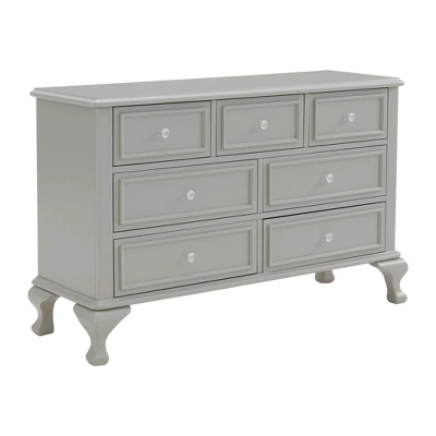 The Picket House Furnishings Jenna Dresser features a charming design with delicate accents. Crafted of durable solid and manufactured wood, finished in beautiful gray. Keep your little one organized with the spacious drawers. Perfect for storing clothes and delicate items. Adorable crystal-like knobs complete this lovely piece. Pair with the Jenna Panel Bed for a complete look!