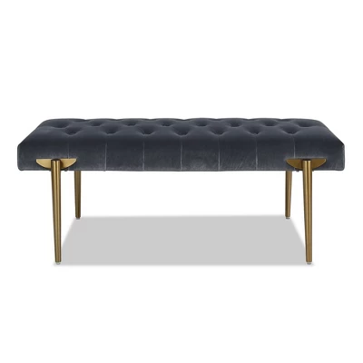 The Aria Accent Bench by Jennifer Taylor Home is a glamorous statement perfect wherever you need additional seating. The performance velvet upholstery is durable and soft, great for homes with kids and pets, and is complemented by the satin gold legs. Use this bench as a dining banquette to complete your dining set, or as a cocktail ottoman in your living room, or in your bedroom at the end of your bed.