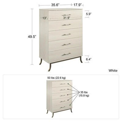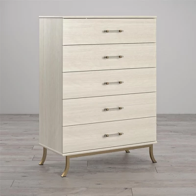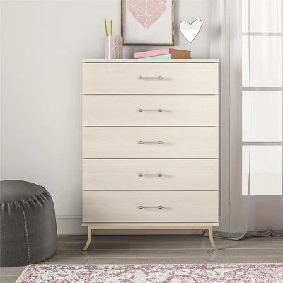 When the time has come to consider teen bedroom ideas for your ever-evolving little princess, let the Little Seeds Monarch Hill Clementine White 5 Drawer Dresser be an elegant part of your bedroom design. Made from laminated MDF and particle board with a warm, off-white wood grain finish, this 5 drawer dresser has plenty of room for all your teen’s clothes storage needs. With its clear, acrylic handles and chic gold metal base, this beautiful dresser will be the perfect storage piece not only for a teen girl bedroom, but any room in your home. The Little Seeds Monarch Hill Clementine White 5 Drawer Dresser meets or exceeds the CPSIA Juvenile testing requirements and includes a wall anchor kit to ensure your child’s safety. Little Seeds not only creates this and many more on trend baby to teen furniture pieces, we also partner with various environmental protection programs to protect pollinator and other wildlife habitats for future generations.