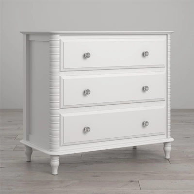 Give your child’s nursery or bedroom the extra storage space it needs with the Little Seeds Rowan Valley Linden 3 Drawer Dresser. The white finish on the laminated MDF and solid wood feet can easily be added to your existing décor. The Jenny Lind styling gives the Dresser a classic Victorian-era look. Two sets of knobs enables you to customize the look of the Dresser. Organize your child’s nursery with the 3 drawers by storing away shirts, onesies, and pajamas. Durable metal slides have built in stops for safety. Keep your Dresser longer by converting to a Changing Table by adding the Rowan Valley Changing Table Topper (sold separately). Remove the Changing Table Topper when your child outgrows it to change back to a youth dresser. The Dresser meets or exceeds the CPSIA Juvenile testing requirements and a wall anchor kit is included to ensure your child’s safety. The Dresser ships flat to your door and 2 adults are recommended to assemble. Once assembled, the Dresser measures to be 32.875”H x 35.5”W x 18.375”D. Little Seeds not only creates this and many more on trend baby to teen furniture pieces, we also partner with various environmental protection programs to protect pollinator and other wildlife habitats for future generations.