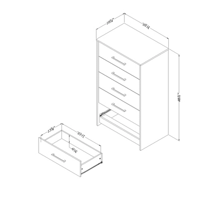 - 5-YEAR LIMITED WARRANTY: South Shore is proud to stand behind this 5-drawer chest storage unit with an exclusive 5-year limited warranty. Shop with confidence knowing your purchase is always covered.