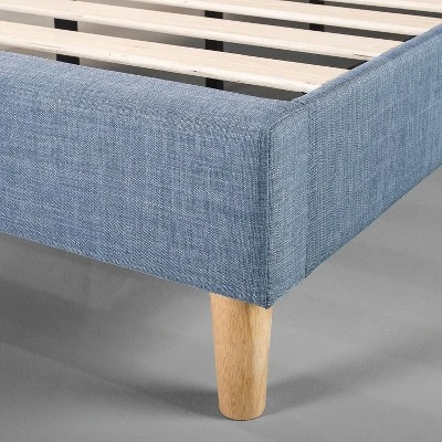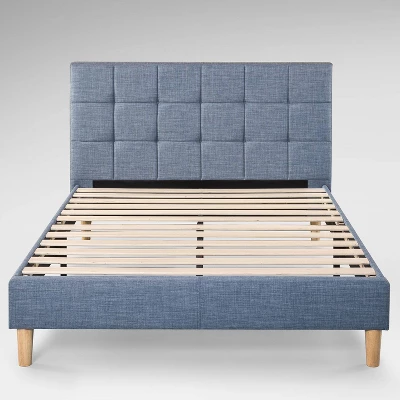 This upholstered Lottie platform bed in light blue lends a trendy, cool vibe to any bedroom. It features a classic square stitched headboard with a soft foam padding and provides just the right support for binge watching your favorite show or your next reading marathon. With its strong steel frame and wooden slats, it’s built sturdy to support any spring, memory foam or hybrid mattress.