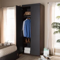 7 Shelf Wardrobe Rikke Two-Tone Wood Storage Cabinet Brown – Baxton Studio