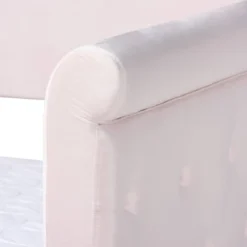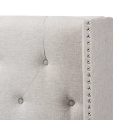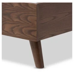 Alinia Mid-Century Retro Modern Fabric Upholstered Walnut Wood Platform Bed – Queen – Baxton Studio