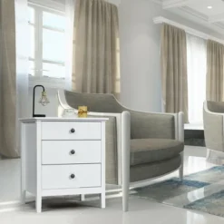 Costway Nightstand Chair Side End Table With Drawer & Shelf Bedroom Furniture White BrownBlack