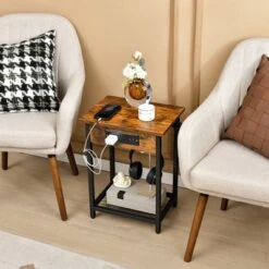 Costway Set Of 2 Nightstand Industrial End Table Sofa Side Table Shelf