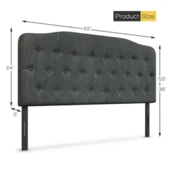 Costway Queen Upholstered Platform Bed Frame With Linen/PU Headboard Wood Slat Gray/Black