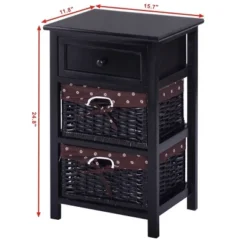 Costway Set OF 2 Night Stand 3 Tier 1 Drawer Bedside End Table Organizer Wood W/2 Basket