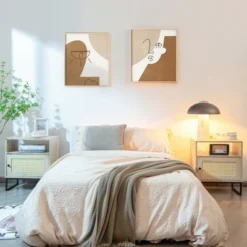 Costway 2PCS Nightstand With Drawer And Storage Cabinet Wooden Sofa Side Table End Table