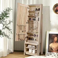 Costway Kid Vanity Table Set With Tri-folding Mirror 2-in-1 Makeup Dressing Table Stool Set