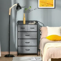 HOMCOM 52″ Linen Upholstered Accent Ottoman Bench With Armrests