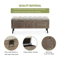 LuxenHome 47.2-Inch Wide Upholstered Wood Storage Bench.
