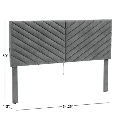 We spend a lot of time at home, and we all deserve an oasis. For a quick and easy refresh to your bedroom escape, minimalist style is all the rage and this queen size headboard creates an instant refresh. Our slim headboard in light gray upholstery with on-trend chevron pleating makes a bold statement and its chic simplicity makes your room feel open and airy. Bed frame, mattress and box spring required; not included. Assembly required.