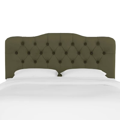 Outfit your leisure area with a classic look that is always in style. This superbly designed headboard has a unique shape and is fully upholstered. Magnificent diamond tufting sets off the silhouette and makes a truly grand statement. Made to order, the piece is manufactured in Illinois and hand upholstered in a high quality fabric, adding an element of richness to the overall design. The headboard connects effortlessly to any standard bed frame for easy assembly.