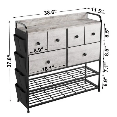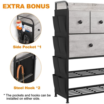 - MULTIFUNCTION DRESSER: Fabric drawer dresser with shelf and side pockets provide abundant storage space for clothes, accessories, and household items