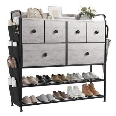 Spruce up your bedroom or living space with this 6-Drawer Dresser with Storage Shelf from REAHOME. This stunning and versatile furniture piece brings functionality and style to your home.Crafted with premium materials, this dresser ensures durability and longevity, making it a reliable storage solution for all your essentials. This dresser boasts 6 spacious drawers, providing ample storage for clothing, accessories, or household items. The 2-tier shelf lets you neatly arrange your shoes, books, or plants, keeping your bed or living space tidy and your favorite things easily accessible. Plus, the convenient side pockets are ideal for stashing small essentials or decorative trinkets. Meanwhile, the dark taupe color scheme exudes contemporary charm, seamlessly blending into various decor themes.In addition to its aesthetic appeal, this dresser organizer is a functional addition to your hallway or entryway closets, efficiently decluttering your space. Embrace a clutter-free and chic environment with the REAHOME 6-Drawer Dresser with Shoe Shelf, a statement piece that harmonizes design and practicality.