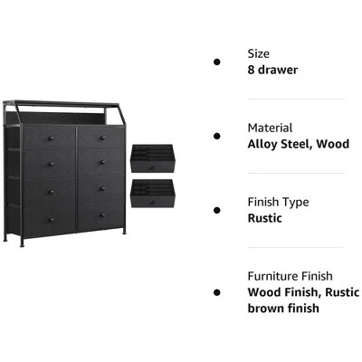 It’s more than just a pretty face. The sleek design of this REAHOME 8-Drawer Wood Top Storage Organizer will pair well with your existing furniture without sacrificing utility.This minimalist-designed dresser drawer provides all the room you need to store anything from clothes to home goods. With 8 drawers, 6 large and 2 small, and including 2 additional drawer organizers, you’ll have the ability to sort socks, ties, belts, and more. The steel frame, wooden countertop, and fabric drawers provide a sturdy structure made from reliable materials. Adorn the top 41.9-inch waterproof surface with your favorite decor items. The adjustable feet and wall attachment add a level of increased safety, especially if you have climbing pets or kiddos.This organizer is ideal for storing activewear, blankets, outerwear, and other clothing or home goods. Position this piece in entryways, bedrooms, living rooms, nurseries, hallways, offices, or any place that needs an injection of style.Elevate the sophistication of your space with a modern piece that is sure to impress. This 8-Drawer Wood Top Storage Organizer from REAHOME has the functionality you need from a dresser while also being easy on the eye.
