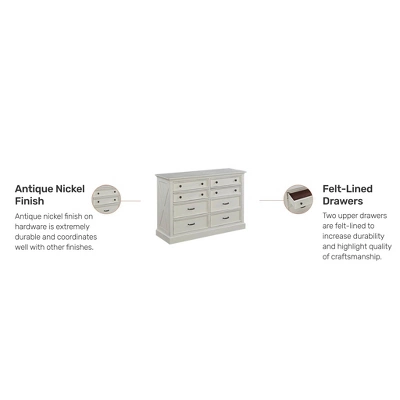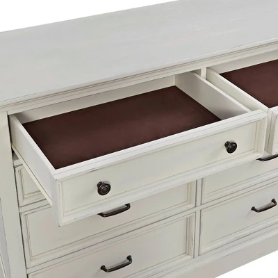 Whether outfitting the master bedroom or making a guest room feel like a guest suite, add the finishing touches with this Homestyles Seaside Lodge Dresser. Eight drawers provide plenty of storage for clothing and personal items, and the large top is large enough to support everything from a mirror to a flat screen. The off-white finish brings a coastal feel into any bedroom and the coastal style creates a light, casual feel.