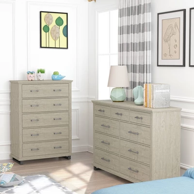 Set Of 2 38″ 5 Drawer Chest And 64″ 9 Drawer Dresser Beige – Accent Furniture