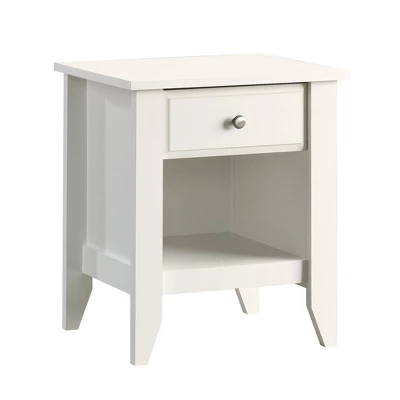 Looking for some stylish bedside storage? Check out this Soft White night stand from the Shoal Creek collection. Find room for all your do-dads and gadgets in the easy-to-access drawer that opens and closes on smooth metal runners. The open shelf below provides you with even more storage and makes this sweet little bedside table the perfect addition to your bedroom.