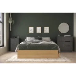 1 Drawer Naoki Two-Tone Wood Nightstand Gray/Walnut – Baxton Studio