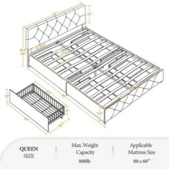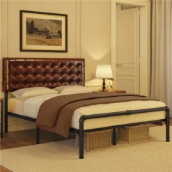 Yaheetech Metal Platform Bed Frame With Square Tufted Faux Leather Upholstered Headboard