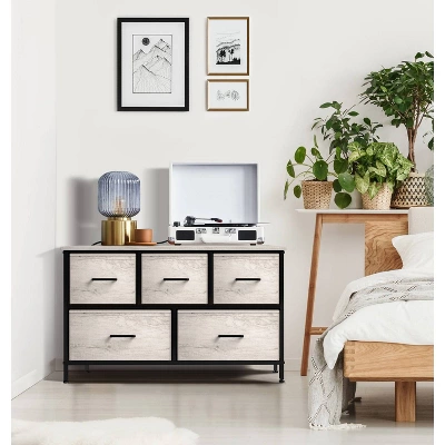Sorbus Wood TV Stand Dresser For Home Bedroom And More Cream/Black