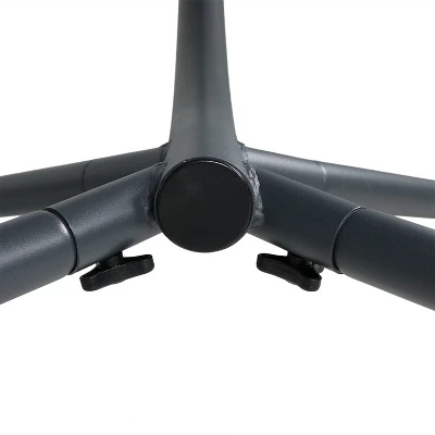 Bring the experience of floating on a cloud with this comfortable floating chaise lounge chair. This hanging lounge chair gives you the feeling of being weightless, great for taking naps after a long day in the sun. This hanging hammock lounge chair is a wonderful addition for the patio, deck, porch, front yard, or around the fire pit. With its beautiful, curved design in the stand, chair, and canopy, this dynamic chair will complement any outdoor space and will look – and feel – stunning. A headrest and padded cushion made from high-quality fabric is sure to keep you comfortable all day long. The durable black powder-coated steel cCshaped stand elevates you securely while remaining strong against the elements. Two padded armrests allow you to relax your arms and shoulders while reclining outside. The removable canopy umbrella keeps you shaded and cool on sunny days and adds a beautiful pop of color anywhere.