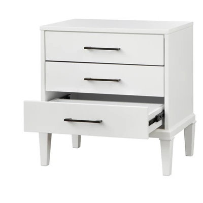Bring style and function to your bedroom with the Sussex 3-Drawer Nightstand from Lifestorey. Convenient storage in an attractive design is ideal for transitional to modern-farmhouse interiors. The nightstand has three spacious drawers for stowing away your bedside essentials. Durably constructed with solid rubberwood legs and MDF in a crisp white finish, the contrasting black metal handles add a perfect touch of sophistication. Matching 6-drawer dresser is also available separately.