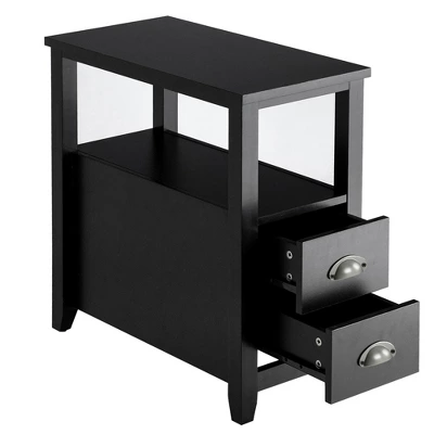 - Large Storage Space : Our end table provides abundant storage space with 2 deep drawers and 2 tiers shelves. You can store small gadgets or accessories like remote control in the drawers. The lamp, photo frame or flower vase can be placed on the top tier. Magazines or books can be placed on the second tier. This end table greatly increases the use of space especially for small units or apartments.