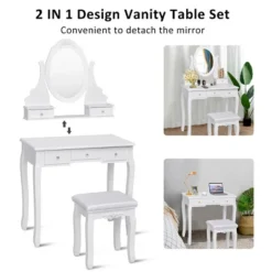 Contemporary Wood Console Table Dressing Table Desk With Mirror And Stool Set – Olivia & May